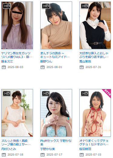 「HEYZO」や「一本道」といった新作も約半年遅れで配信されるため、最新作品も見逃さずチェックできます。 - 人気AV女優も網羅