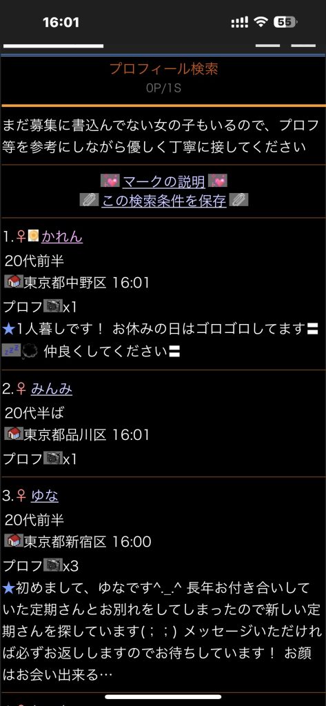 検索条件で自分の移動できる範囲、希望する年齢などを選択します。