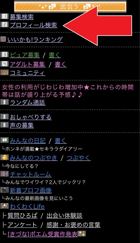 2番の「プロフィール検索」を選択します。(赤矢印)